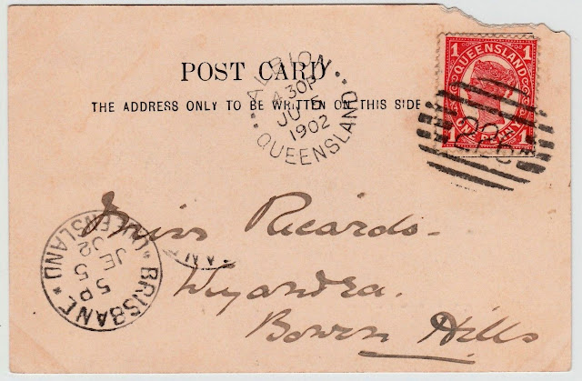 Albion Sideface Barred Numeral Type 2a (7 mm) rated Common. Dated 5 June 1902. Seen on Ebay